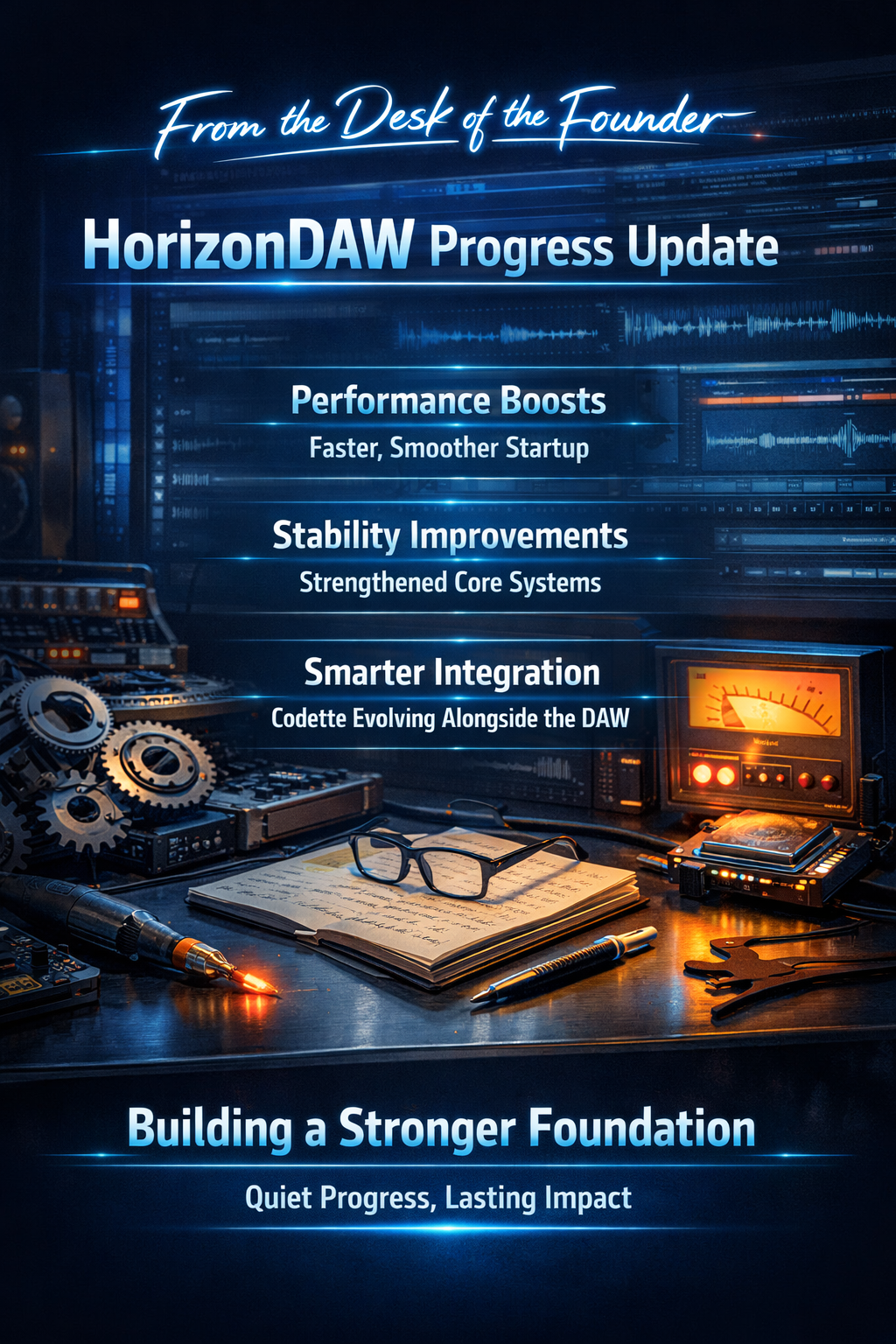 Creative software should feel inspiring, but it also has to feel dependable. It has to respect the session, respect the signal path, and respect the person behind the controls. That philosophy continues to shape how HorizonDAW is being built at every level.